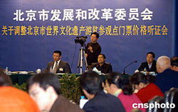 頤和園、故宮、八達嶺長城、天壇、定陵、長陵六處北京市世界文化遺產(chǎn)門票價格擬調(diào)整,十一月三十日該六處游覽參觀點門票價格調(diào)整聽證會在京舉行,北京市發(fā)展和改革委員會官員、專家學(xué)者等出席聽證會,市民代表旁聽。其中,作為北京市民晨練休閑的場所,頤和園、天壇的門票上漲幅度最為旁聽市民代表關(guān)注。作者:徐曦弋