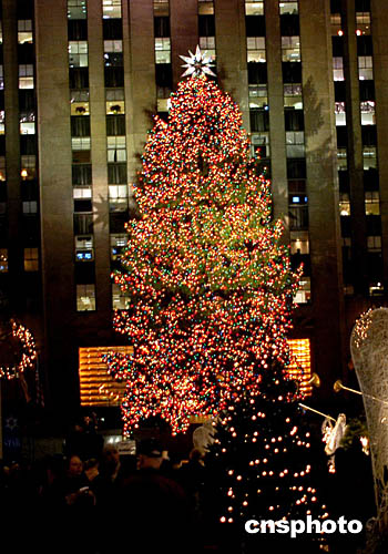 從當?shù)貢r間十二月一日開始,美國紐約洛克菲勒中心近二十二米高的巨大圣誕樹,每天下午五點開始亮燈直至晚上十一點半,把紐約帶進一年中最繽紛的圣誕季節(jié)。這棵圣誕樹樹頂懸掛著由兩萬五千顆水晶組成的星星,璀璨奪目。作者:趙海燕
