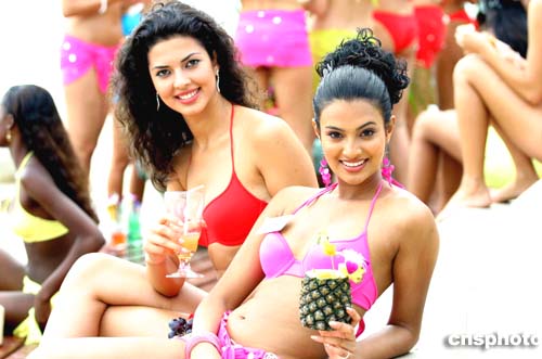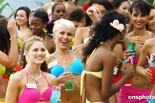 在12月4日舉行第54屆世界小姐總決賽前夕,為拍攝宣傳短片,各國(guó)美女身著泳裝在三亞開沙灘派對(duì),盡情感受三亞熱情風(fēng)情。作者:喜來(lái)登