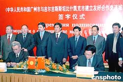 十二月一日晚,廣州市市長(zhǎng)張廣寧與正在廣東訪問(wèn)的吉爾吉斯斯坦總理尼古拉·塔納耶夫,簽署關(guān)于廣州與吉爾吉斯斯坦首都比什凱克建立友好合作交流城市的備忘錄。作者:劉衛(wèi)勇