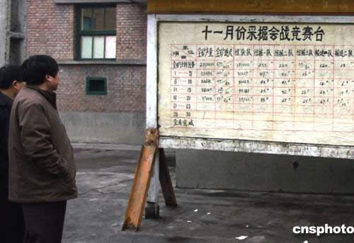 | 十二月二日下午,連續(xù)發(fā)生新的瓦斯爆炸、遇難礦工生還無望、井下搜救全面停止的壞消息使陜西銅川礦務(wù)局陳家山煤礦籠罩在悲痛、無望、凝重、憤怒的氣氛中。舉目四望,礦區(qū)內(nèi)處處可見的宣傳牌與當(dāng)今的氣氛形成極為不和諧的對(duì)比。其中該礦十一月采煤競賽臺(tái)告示牌,清晰記錄了發(fā)生瓦斯爆炸事故前的一段歷史。作者:任晨鳴