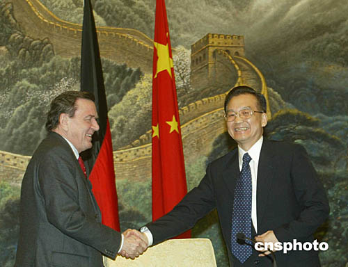 溫家寶是在結束與正在中國進行工作訪問的德國總理施羅德的會談后對中外記者作上述表示的。