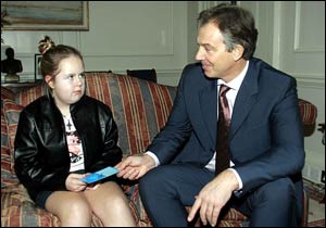 中新網(wǎng)12月8日電 英國(guó)《太陽(yáng)報(bào)》報(bào)道,7日,英國(guó)首相布萊爾會(huì)見(jiàn)了12歲小姑娘比安卡·鮑威爾,對(duì)她與壞人進(jìn)行頑強(qiáng)抗?fàn)幍木窠o予了充分肯定。