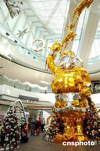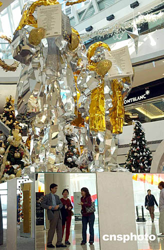 香港最高的國際金融中心商場在圣誕節(jié)前夕,布置一組美輪美奐的水晶玻璃圣誕裝飾,令顧客的晶瑩剔透的圣誕氣氛中流連忘返。作者:洪少葵
