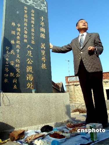 韓國憲政會政策委員會議長、林氏中央會會長林芳鉉先生千里迢迢帶團(tuán)參加慶典,當(dāng)天下午,韓國代表團(tuán)一行還特地趕往惠安東嶺彭城拜謁“林八及渡海處”遺址,他們還帶來了韓文撰寫的詳細(xì)記載了唐朝林八及渡海赴韓及后裔來泉尋根歷史的碑文,準(zhǔn)備銘刻在前年用中文所立“千年溯源萬里尋根”紀(jì)念碑的背面。林芳鉉介紹,韓國也有個(gè)地方叫彭城,唐朝時(shí)始祖林八及公從惠安彭城去往韓國,因?yàn)閼涯罟释,將那里命名為彭城。韓國有姓氏300多個(gè),林姓位列前十,林氏后裔現(xiàn)有100多萬人。