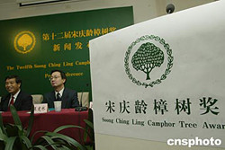 | 十二月十一日,中國(guó)福利會(huì)在北京公布第十二屆宋慶齡樟樹(shù)獎(jiǎng)評(píng)選結(jié)果。宋慶齡樟樹(shù)獎(jiǎng)是表彰為中國(guó)婦幼事業(yè)做出突出貢獻(xiàn)的國(guó)內(nèi)外人士設(shè)置的獎(jiǎng)項(xiàng)。本屆五名獲獎(jiǎng)?wù)叻謩e是全國(guó)婦聯(lián)名譽(yù)主席彭佩云、著名社會(huì)活動(dòng)家陳香梅、聯(lián)合國(guó)兒童基金會(huì)駐華辦事處首席代表伍德琛、國(guó)際“微笑列車(chē)”總裁白堅(jiān)龍和公安部刑偵局調(diào)研員祝燕濤。中新社記者:史利