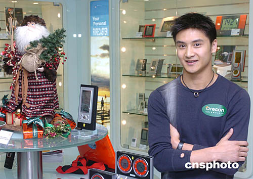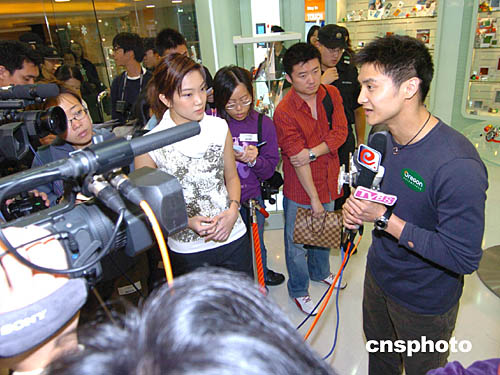 中國跳水金牌選手田亮11日來到香港時(shí)代廣場8層電子產(chǎn)品專賣店﹐為該店圣誕節(jié)禮品促銷造勢。中新社記者:趙振清