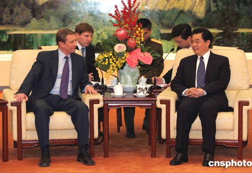 胡錦濤表示,當(dāng)前,中俄兩國(guó)都面臨著維護(hù)和平穩(wěn)定,促進(jìn)共同發(fā)展的任務(wù)。進(jìn)一步深化兩國(guó)的戰(zhàn)略協(xié)作,加強(qiáng)兩國(guó)兩軍在雙邊和上海合作組織等多邊框架內(nèi)的協(xié)調(diào)與合作,共同打擊威脅各國(guó)及地區(qū)安全的恐怖主義等惡勢(shì)力,符合本地區(qū)各國(guó)人民的根本利益。希望雙方共同努力,進(jìn)一步落實(shí)好《<中俄睦鄰友好合作條約>實(shí)施綱要》等一系列雙邊合作文件,推動(dòng)兩國(guó)戰(zhàn)略協(xié)作伙伴關(guān)系不斷向前發(fā)展,為維護(hù)和促進(jìn)地區(qū)及世界的和平、穩(wěn)定與發(fā)展作出新貢獻(xiàn)。
