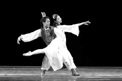 趙明的第一個承諾是:“大家都說《紅樓夢》難做,原來的著作太大,大到?jīng)]人敢碰,雖然我的舞劇從原書的120回濃縮到舞臺上的90分鐘,我可以保證我的舞蹈可以讓每一個觀眾明白舞臺上到底發(fā)生了什么。換句話說,就是每個觀眾都可以看懂我的《紅樓夢》中的故事到底講了些什么!蔽鑴〉拈_場堂堂皇皇,賈府各色人等魚貫出場,奢華也好、靚麗也好,只有當(dāng)寶、黛、釵三人紛沓而至的時候,音樂和舞蹈才呈現(xiàn)出真正的眷戀。集萬千寵愛于一身的寶玉精靈般出場,寶釵的出場則要雍容華貴得多了,她代表一種身份的象征,而林妹妹走上舞臺的一剎那,人們就會感受到舞臺上刺骨的冷,最終點化了全局的宿命——為愛而亡。不用注解、不用說明,趙明的舞劇就這樣在開始的時候已經(jīng)讓觀眾明白了每個人物的身份和他們在戲劇中的命運。