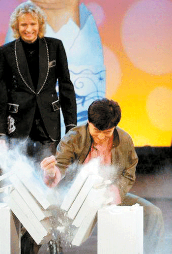 此外,他還與著名網(wǎng)球選手費得勒一起亮相德國電視節(jié)目《Bet, it?》,在節(jié)目進行中,成龍即興作驚險表演,用單臂擊碎大石,引來觀眾一片驚嘆。(阿湯)