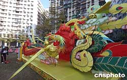 工人正在澳門佑漢公園趕制喜慶牌匾,為慶祝澳門特別行政區(qū)成立五周年,十八日澳門街坊總會將在此地舉辦“金蓮?fù)缕G齊鼓舞,彩燈璀璨慶回歸”系列大型慶;顒。作者:梁永強(qiáng)
