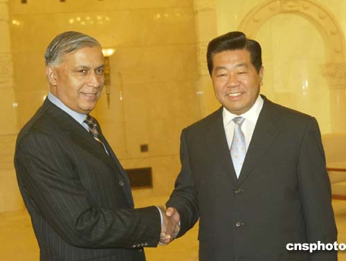 中新社北京十二月十六日電 全國(guó)政協(xié)主席賈慶林今天在北京人民大會(huì)堂會(huì)見(jiàn)了來(lái)訪的巴基斯坦總理阿齊茲。