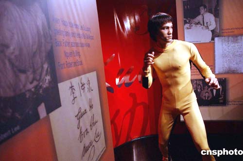 香港山頂?shù)亩派蛉讼炏耩^,近期推出的李小龍蠟像及“李小龍家族圖片展”,展示從未公開(kāi)的照片,紀(jì)念功夫巨星李小龍離開(kāi)三十一年。作者:洪少葵