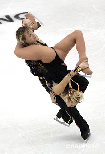 二零零四年十二月十八日晚在北京首都體育館舉行的世界花樣滑冰大獎(jiǎng)賽總決賽冰舞比賽中,各國選手爭(zhēng)相斗艷,上演了一曲曲美侖美奐的冰上盛宴。圖為加拿大選手杜布雷爾/倫佐在比賽中。中新社記者:武仲林