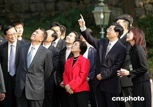 圖為行政長官何厚鏵陪同胡錦濤一行參觀。作者:董會(huì)峰
