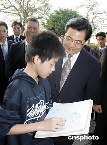 胡錦濤主席在參觀澳門著名景點(diǎn)大炮臺(tái)時(shí),與在現(xiàn)場寫生的一位澳門兒童交談,并祝他長大后成為一名畫家。