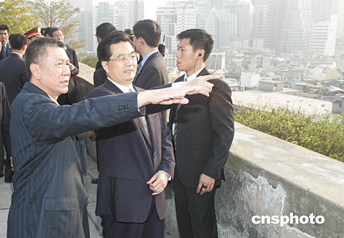 胡錦濤主席在澳門大炮臺(tái)參觀時(shí),行政長官何厚鏵向其介紹澳門市政建設(shè)情況。