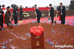 | 十二月十九日上午,總投資一億五千萬元的TCL成都數(shù)碼工業(yè)園在成都高新技術(shù)產(chǎn)業(yè)開發(fā)區(qū)正式破土動(dòng)工,該集團(tuán)高級(jí)副總裁呂忠麗(左二)及四川省政府秘書長(zhǎng)李洪仁(中)等官員為該項(xiàng)目奠基。TCL成都數(shù)碼工業(yè)園是TCL與法國(guó)湯姆遜合資組建全球最大彩電企業(yè)TTE公司后的首個(gè)投資項(xiàng)目,也是TCL在中西部最大的一個(gè)投資項(xiàng)目。至此,TCL集團(tuán)初步完成了彩電產(chǎn)業(yè)在中國(guó)東南西北中的戰(zhàn)略布局。作者:楊杰