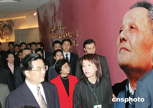胡錦濤主席在澳門博物館參觀時,注目一幅鄧小平的巨大畫像。該博物館內(nèi)正舉辦“世紀(jì)偉人鄧小平”圖片展