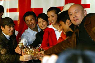中新網12月21日電 據北京娛樂信報報道,昨(20)晚,為了慶!短煜聼o賊》票房突破8000萬元大關,主創(chuàng)馮小剛、劉德華、劉若英、葛優(yōu)、李冰冰、王寶強、尤勇、張涵予等眾明星在東方新世紀影城大擺慶功宴。