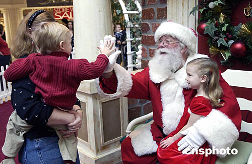 當(dāng)?shù)貢r(shí)間十二月二十四日圣誕節(jié)前夕,硅谷最重要的城市圣荷西的圣誕老人在購物中心關(guān)門前的最后一分鐘還在向孩子們祝賀圣誕。作者:陳鋼