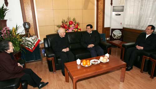 前天下午,中共中央總書記、國家主席、中央軍委主席胡錦濤,分別看望了朱光亞和楊樂兩位著名科學(xué)家,聽取他們對中國科技事業(yè)發(fā)展的意見和建議,向他們和全國科技工作者表示親切問候和新年祝福。