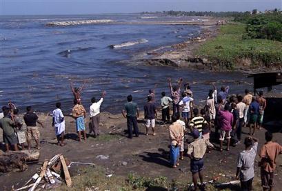 印度東部海岸也受到波及,造成至少140多人死亡,另有數(shù)以百計的漁民在海上失蹤。馬來西亞警方說,地震引發(fā)的海嘯已導(dǎo)致馬來西亞北部7人死亡和2人失蹤。海嘯還使馬爾代夫首都馬累大約三分之二地區(qū)被淹。新加坡、緬甸和孟加拉國等也有震感。