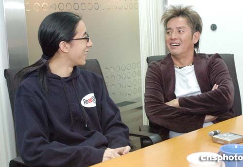 | 歌星譚詠麟12月28日在香港出席《RoadShow“紅人館”》,為全新推介---“校長(zhǎng)駕到”擔(dān)任嘉賓主持,今次請(qǐng)來樂壇新人房祖名等人接受訪問,在未錄像前,譚詠麟跟房祖名談笑風(fēng)生。該節(jié)目稍后將在全線RoadShow流動(dòng)媒體上播放。作者:鄧慶樂