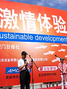 在第三十六屆世界電信日即將來臨之際,中國電信寬帶用戶突破一千萬,成為中國寬帶業(yè)務(wù)眾多服務(wù)提供商中首個突破千萬用戶的運營商。圖為廈門電信公司總經(jīng)理陳揚忠宣布啟動“激情體驗”系列慶祝活動。作者:楊伏山