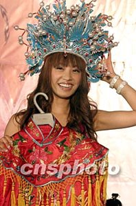 五月十七日,華人樂壇冠軍流行小天后蔡依林在北京舉行全新專輯《城堡》熱賣的慶功大會。蔡依林在現(xiàn)場戴上鳳冠,展示鳳袍來為自己打氣。作者:高遠