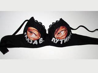 這次新的藝術(shù)品展覽包括25件胸罩,比爾佐表示,這些當(dāng)中有一個(gè)是獻(xiàn)給庫(kù)土索夫的,另一個(gè)是描述普京的眼睛,前蘇聯(lián)總統(tǒng)勃列日涅夫 的眉毛, 赫魯曉夫臉上的瑕疵,以及葉利欽時(shí)代的統(tǒng)治。