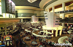 中新社澳門五月十八日電(記者 李剛)總投資額兩點(diǎn)四億美元的金沙娛樂場五月十八日在澳門開業(yè)。這是澳門特別行政區(qū)賭權(quán)開放以來開業(yè)的第一家美式賭場。