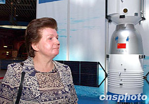 現(xiàn)年六十七歲的捷列什科娃雖年過花甲,但舉手投足間的迷人風(fēng)采依然不減當(dāng)年。她一邊興致勃勃地觀看“長(zhǎng)征”運(yùn)載火箭、“神舟”飛船等各種航天器模型,一邊親切地同身邊的小觀眾和記者們交談。她說,“中國(guó)航天可以說是取得了非常燦爛的成就”、“宇宙的條件對(duì)于男、女來(lái)說沒有區(qū)別,是完全一樣的”、“中國(guó)女性目前在各行各業(yè)表現(xiàn)都很突出,將來(lái)她們?cè)谟詈绞聵I(yè)中會(huì)做得非常優(yōu)秀、非常棒”。