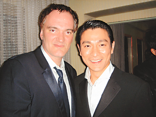 《十面埋伏》昨晚在戛納展映,氣氛異;鸨ネ〉热艘驳竭_捧場。在展映后的酒后中,昆汀拉著華仔敘談,稱華仔的114部電影他全部看過,是華仔的一個影迷。