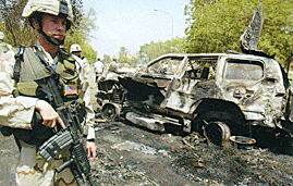 伊拉克當(dāng)?shù)貢r(shí)間5月17日上午,一列由5輛車組成的車隊(duì)駛近巴格達(dá)“綠區(qū)”駐伊聯(lián)軍總部12號(hào)檢查站,并依次通過,但就在最后一輛車將要通過的時(shí)候,一輛緊挨著車隊(duì)?康募t色大眾小車發(fā)出轟的一聲巨響,最后的那輛轎車連同前后左右的車輛變成了一團(tuán)火球,伊拉克臨時(shí)管理委員會(huì)(簡(jiǎn)稱臨管會(huì))輪值主席薩利姆就在那輛車上。
