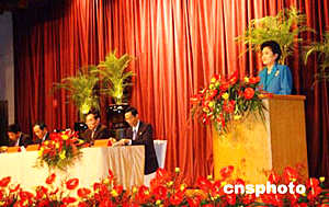 5月26日,香港著名藝人汪明荃盛裝在君悅酒店出席活動,與訪港的全國政協(xié)副主席、中共中央統(tǒng)戰(zhàn)部部長劉延?xùn)|見面。作者:洪少葵