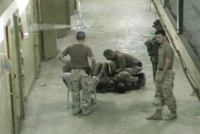 在阿布格萊布監(jiān)獄的虐囚事件中,軍情人員涉嫌鼓勵美國士兵虐待囚犯一直是倍受關(guān)注的中心問題。按照規(guī)定,軍事警察的責(zé)任是看守囚犯,無權(quán)參與審訊過程。但負責(zé)調(diào)查阿布格萊布監(jiān)獄虐囚事件的塔古巴上將卻在一份報告中引用了一名獄警的證詞,稱軍情人員經(jīng)常游說看守人員虐待俘虜,以讓他們在審訊中松口。