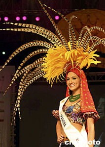第十六屆世界模特小姐大賽國際總決賽五月二十八日晚在美麗的西子湖畔隆重舉行。圖為世模進行特色服飾表演。作者:張茵