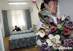 二零零四年高考臨近,北京各星級酒店的高考房經(jīng)濟大戰(zhàn)紛紛提前打響。位于人大附中、北大附中等考點附近的友誼賓館六月一日至六月二十六日推出高考房,并將蘇州園林風格的公寓套間作為考生的“避暑房”,為考生提供幽雅安靜的學習環(huán)境。中新社記者:張勤