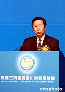 “泛珠三角區(qū)域合作與發(fā)展論壇”6月1日在香港揭幕,圖為國務(wù)院港澳辦副主任陳佐洱在討論上演講。作者:洪少葵