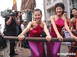 六月四日下午,電視紀(jì)錄片《鄭和下西洋》水路拍攝啟航式在南京下關(guān)碼頭舉行。攝制組將沿著鄭和下西洋航線的重要地段進(jìn)行水路拍攝,重現(xiàn)祖先航海的艱險,尋覓散軼海內(nèi)外的歷史遺存,詮釋六百年來的謎點(diǎn)。圖為“鄭和寶船”的風(fēng)帆徐徐升起。作者:丁東升