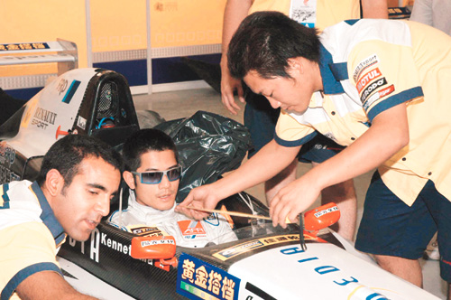 說到今次出賽,“城城”表示所駕駛的賽車,是由贊助商特地自意大利運來的,還替他度身訂制座位。問他可擔(dān)心有危險?他笑道:“不怕的,因為我戴了頭盔嘛!(那么信心如何?)今次是慈善為首要,輸贏反而是其次。雖然今天的賽道有些滑,但由于只是熱身,我不會拚盡,待九月舉行的一級方程序賽事才拚盡!庇帧俺浅恰弊蛉章鋱黾闯蔀榻裹c,很多人都爭相跟他合照。