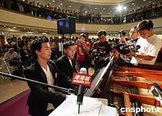 香港海港城連續(xù)數(shù)年舉辦的Music in the City音樂(lè)表演,為更多音樂(lè)人才提供了開(kāi)放的表演空間,盡情發(fā)揮無(wú)窮的音樂(lè)創(chuàng)意。日前,新晉唱作歌手徐偉賢與鋼琴王子陳雋鶱在價(jià)值約港幣二百萬(wàn)的鋼琴大顯身手,“一琴四手”彈奏出娓娓動(dòng)聽(tīng)旋律,現(xiàn)場(chǎng)氣氛熱烈。作者:洪少葵