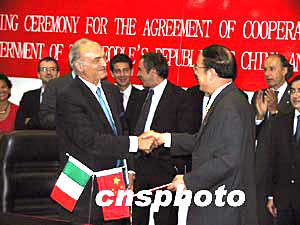 中新網北京6月8日電(記者孫自法)中國國家知識產權局局長王景川和來華訪問的意大利生產活動部部長安東尼奧·馬爾扎諾分別代表兩國政府,八日在此間簽訂《中華人民共和國政府與意大利共和國政府知識產權合作協定》。