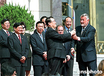 中新網(wǎng)6月9日電 今天上午9時,2004年雅典奧運(yùn)會火炬北京傳遞活動在北京正式開始;顒悠瘘c(diǎn)設(shè)在人民大會堂東門外廣場,傳遞途中設(shè)立148個接力點(diǎn),終點(diǎn)設(shè)在頤和園。