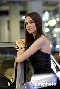六月中旬在北京舉行的2004年北京國際汽車展上,中外廠家在車型、布展、車模等各個方面爭相比靚,以在年內(nèi)日漸低迷的中國車市上奪得市場先機。中新社記者:盛佳鵬