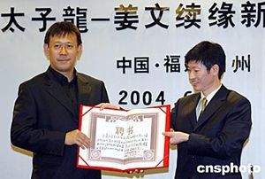 影帝姜文六月十三日在福州出席“太子龍-姜文續(xù)緣新聞發(fā)布會”時,接受浙江太子龍服飾有限公司董事長王培火頒發(fā)的聘書,繼續(xù)擔(dān)任太子龍形象代言人。這種延續(xù)合作在中國文藝界名人中為數(shù)不多。由姜文監(jiān)制并主演的太子龍新廣告片十三日在福州與媒體和觀眾見面,其精湛的演繹再次獲得眾口一詞的贊嘆。中新社記者:毛建軍