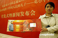 為紀(jì)念鄧小平誕辰一百周年,郵品珍藏冊(cè)《中國(guó)人民的兒子——鄧小平》6月16日在北京人民大會(huì)堂舉行首發(fā)式。珍藏冊(cè)內(nèi)包括國(guó)家郵政局為紀(jì)念鄧小平百年誕辰特批的104枚個(gè)性化郵品,這些郵品集納了鄧小平一生中各個(gè)歷史時(shí)期的珍貴照片,并配有2克999純金、20克純銀制作的紀(jì)念張一枚。這套珍藏冊(cè)全球限量發(fā)行3萬(wàn)套。中新社記者:盛佳鵬