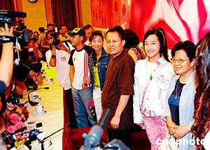 由中國(guó)著名電影明星劉曉慶(右二)加盟的電影《春花開》,6月16日日在北京人民大會(huì)堂舉行開機(jī)儀式。這部電影由中國(guó)第六代電影導(dǎo)演代表之一的劉冰鑒(右三)執(zhí)導(dǎo),他拍攝的《硯床》、《男男女女》等電影作品在海外電影節(jié)上多次獲獎(jiǎng)。中新社記者:王麗南