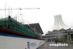 廣西南寧國際會展中心是每年一度中國-東盟博覽會唯一指定場館,會展中心位于桂海高速公路南寧出口處,中心拱頂猶如一朵朱槿花(南寧市市花),盛開在南寧民歌廣場旁。從二零零四年起,中國-東盟博覽會每年十一月都將在廣西南寧舉辦。南寧國際會展中心二期工程是南寧市迎接中國-東盟博覽會的重大建設(shè)項(xiàng)目之一,計(jì)劃于二零零四年年內(nèi)完成。圖為正在加緊建設(shè)中的南寧國際會展中心二期工程。中新社記者:張勤